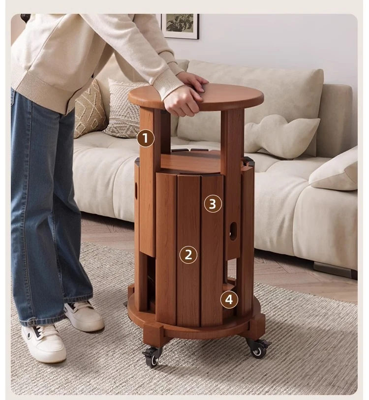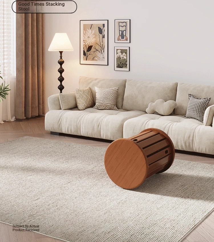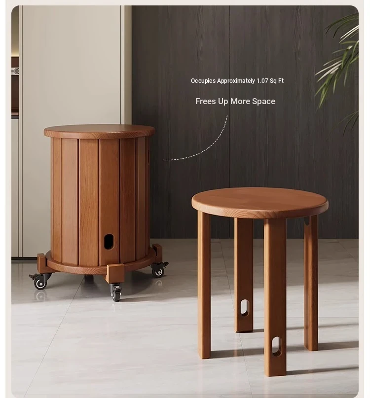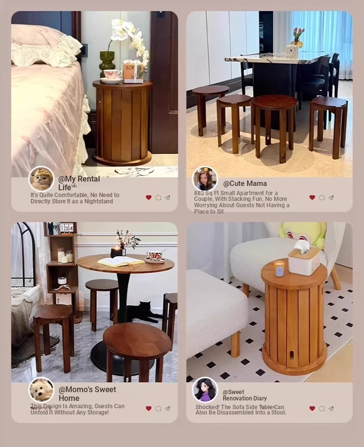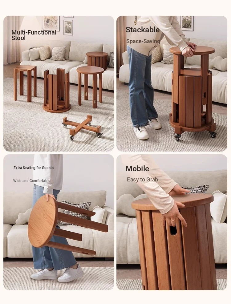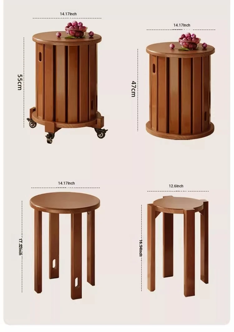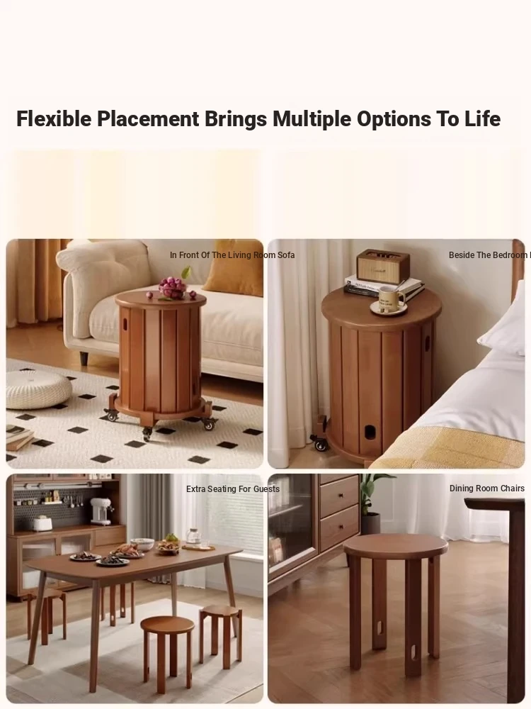 Versatile Solid Wood Nesting End Tables and Stools - Stylish and Space-Saving, Perfect for Living Room Use, Multi-functional 4-in-1 Small Round Stool with Easy Mobility and Storage Solutions.
