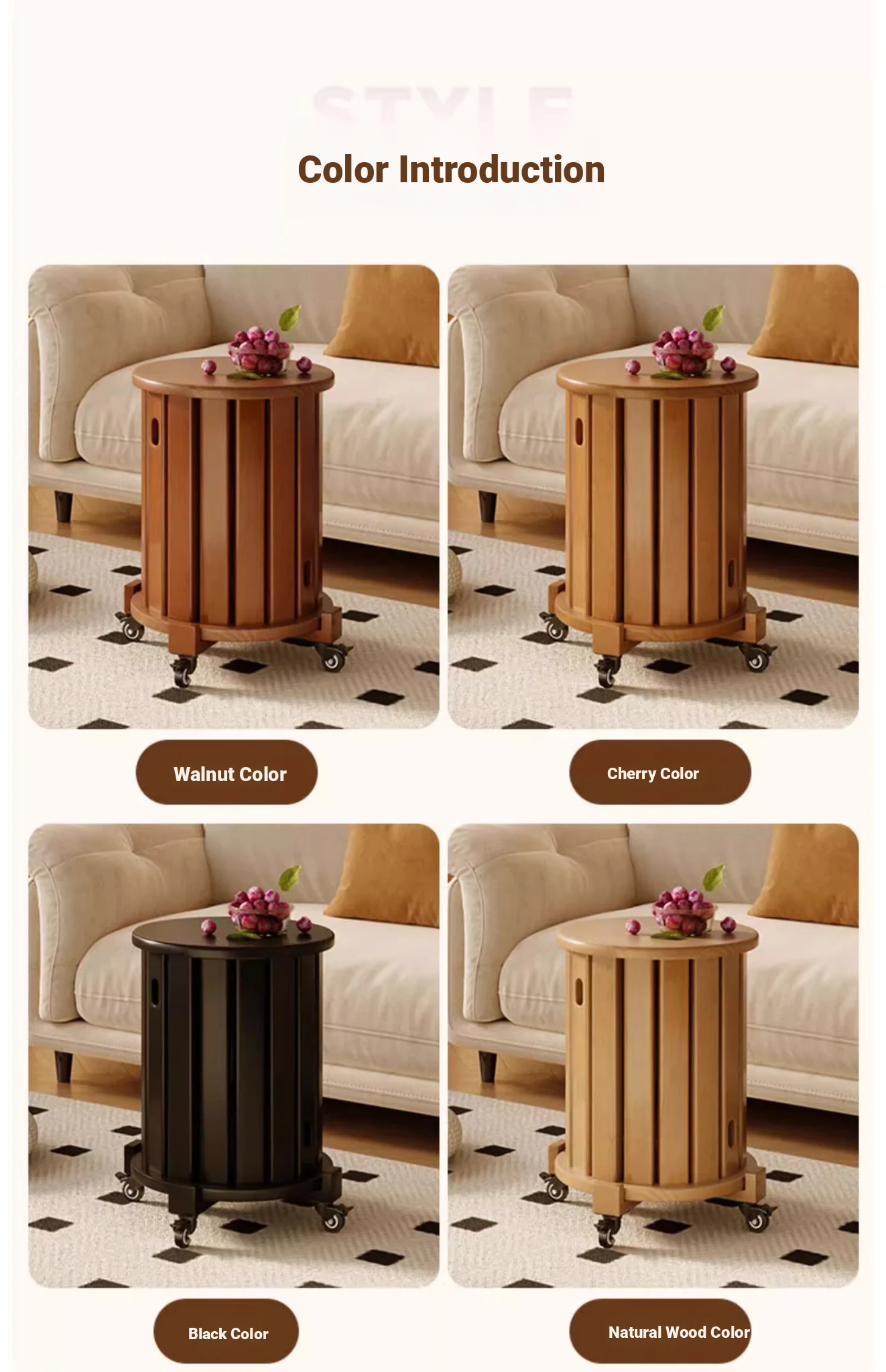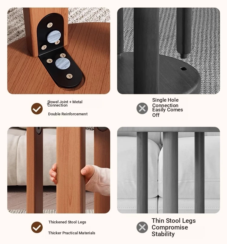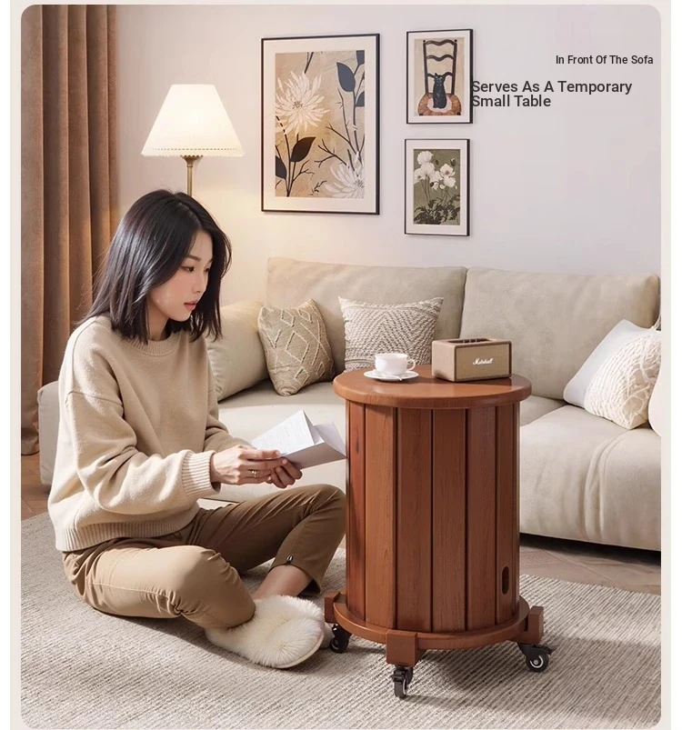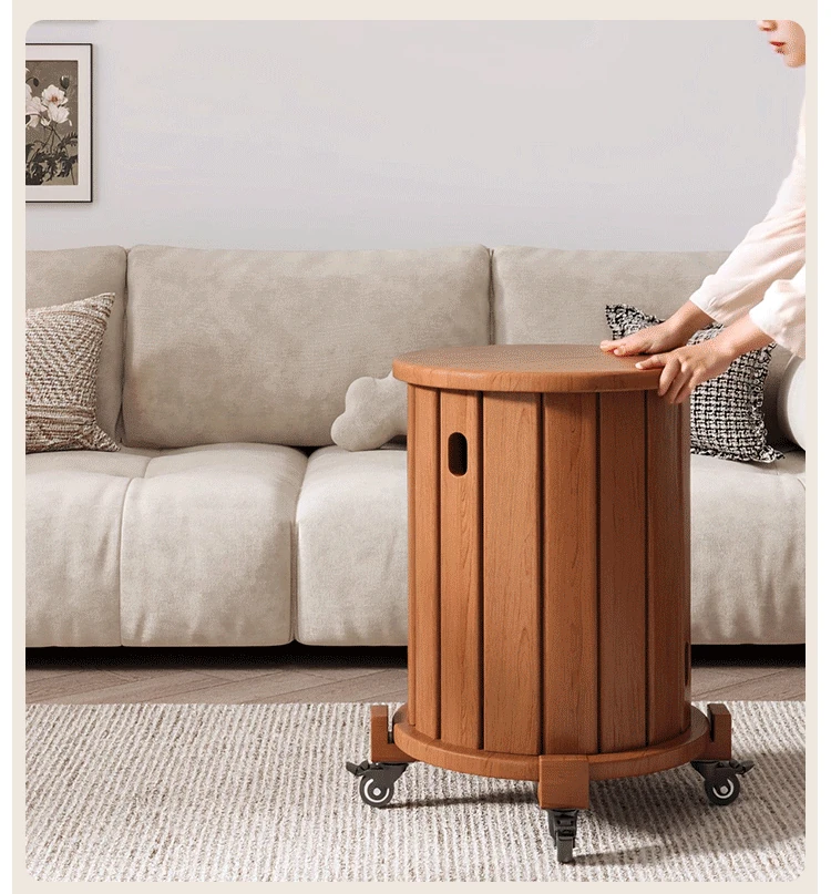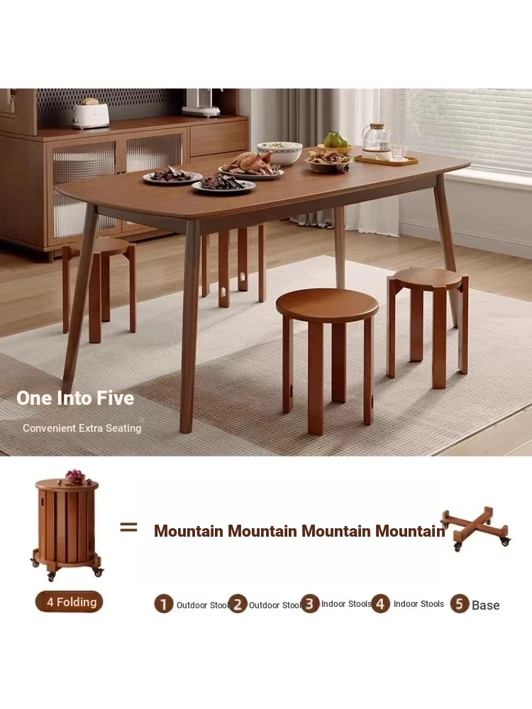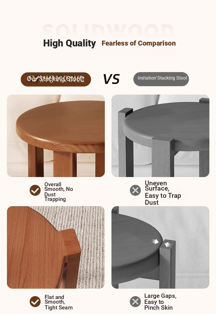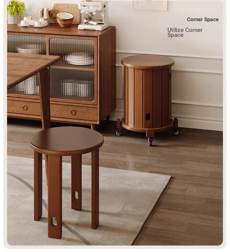 Versatile Solid Wood Nesting End Tables and Stools - Stylish and Space-Saving, Perfect for Living Room Use, Multi-functional 4-in-1 Small Round Stool with Easy Mobility and Storage Solutions.