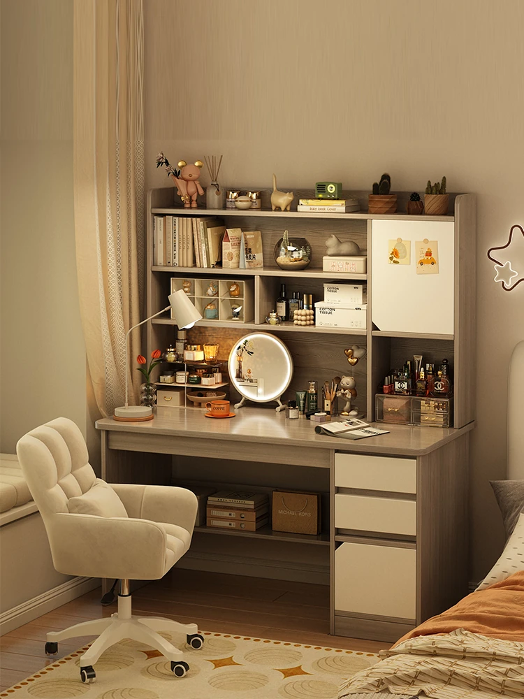 Modern Minimalist Vanity Table with Bookshelf - Versatile Makeup Desk and Study Table for Bedroom, Home Office, and Students. Perfect for Organizing Your Space!