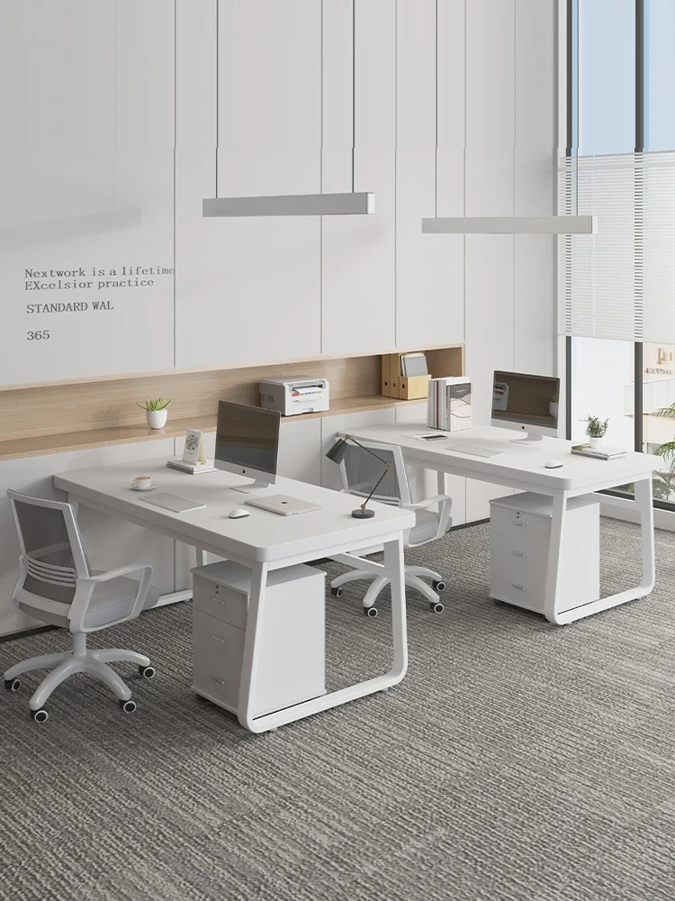 Modern Minimalist Office Desk Set for 2 - Stylish and Functional Workstations for Employees and Home Use - Perfect for Computer Setup