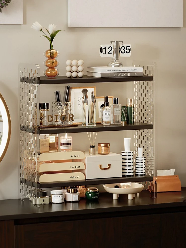 Vintage-Inspired Acrylic Makeup Organizer - Stylish Vanity Storage Rack for Skincare Products and Accessories - Perfect Display for Girls' Bedrooms