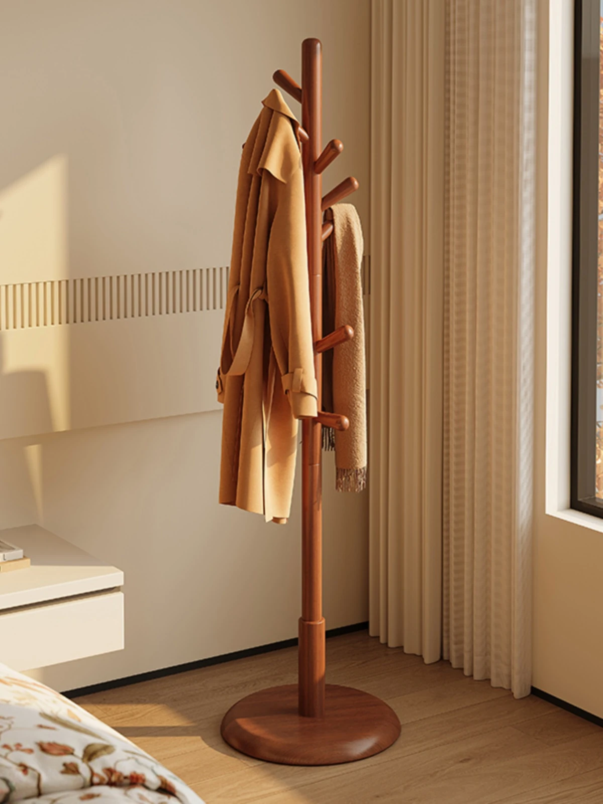 Stylish Solid Wood Freestanding Clothes Rack - Simple Bedroom Hanger, Compact Coat Stand for Living Room, Perfect for Easy Clothing Display and Organization