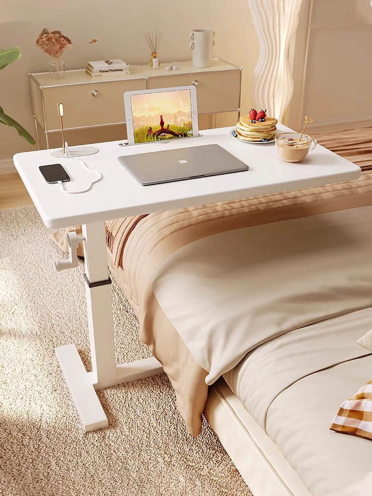 Cream-Finish Adjustable Nightstand - Portable Bedside Table for Bedroom, Ideal for Storage & Work, Perfect for Lazy Evenings with Your Laptop