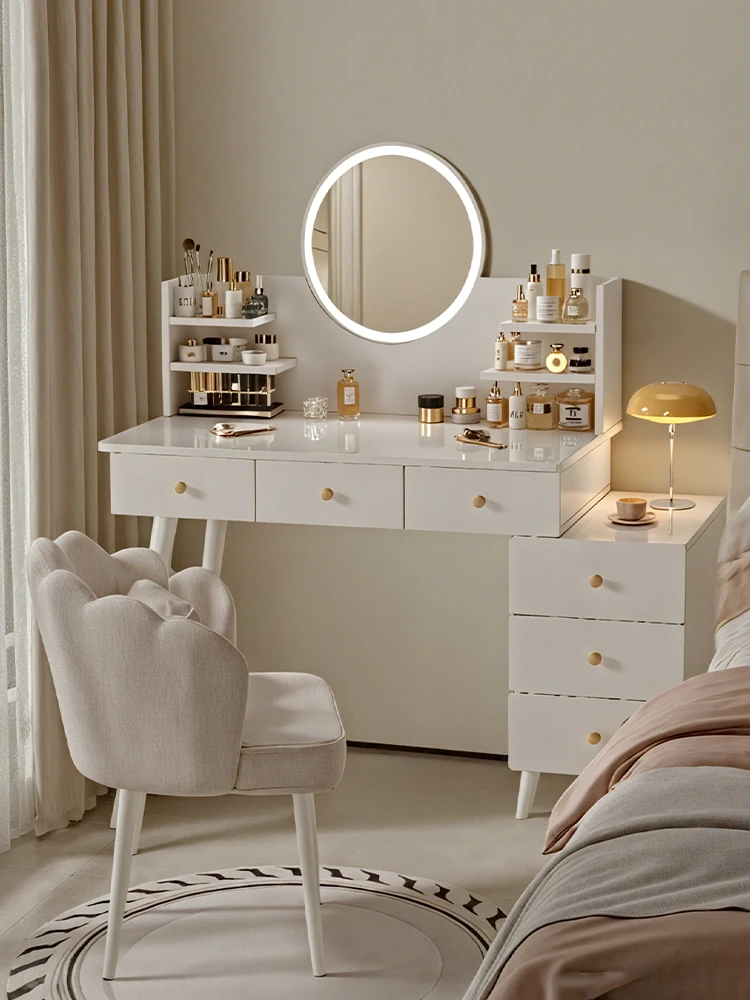 Modern Cream-Colored Vanity and Nightstand Combo for Small Bedrooms - 2025 New Design, Minimalist Style Dressing Table and Makeup Cabinet