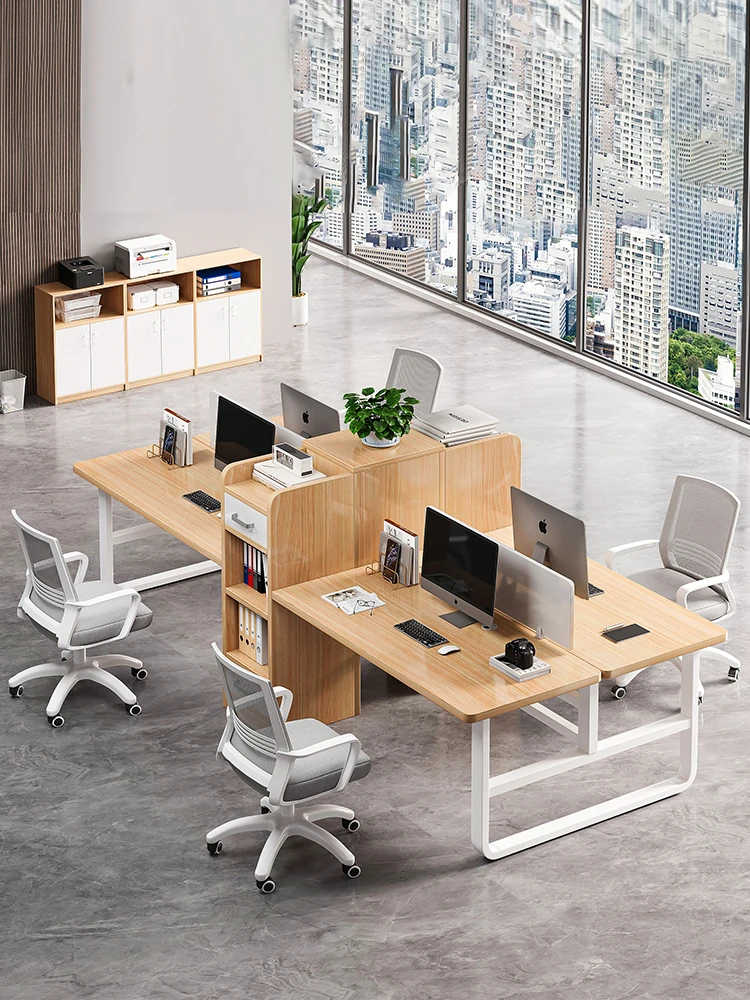 Modern Double Workstation Desk for Office - Minimalist 4-Person Desk and Chair Set, Perfect for Employee Collaboration and Productivity
