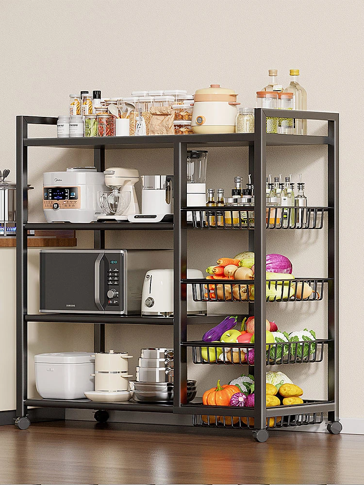 Multi-Functional Kitchen Storage Rack - Floor Standing, 3-Tier Rolling Shelves, Heavy-Duty Vegetable and Spice Organizer for Home Use