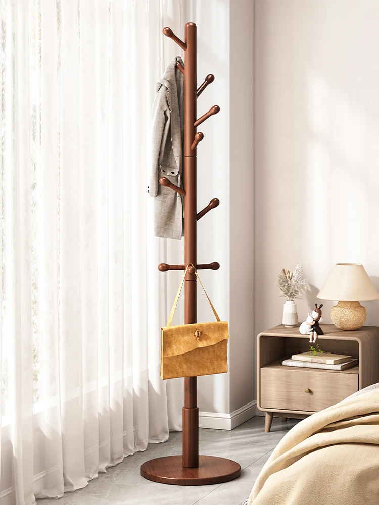 Solid Wood Garment Rack - Stylish Floor Standing Clothes and Hat Hanger for Bedroom, Perfect Nighttime Outfit Organizer, Trendy Single Rod Design