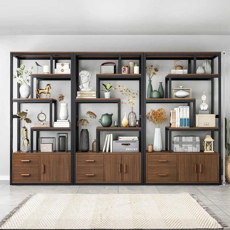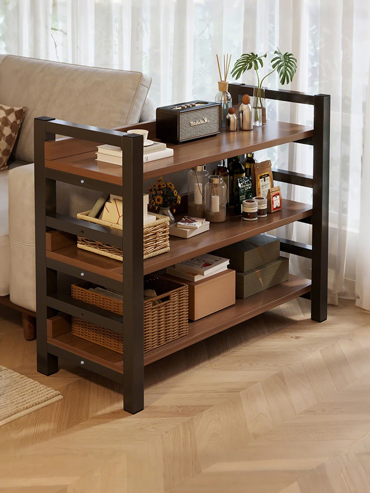 Stylish Living Room Side Storage Rack - Low Floor Display Shelf, Steel-Wood Storage Cabinet, Perfect for Organizing Books and Decorative Items