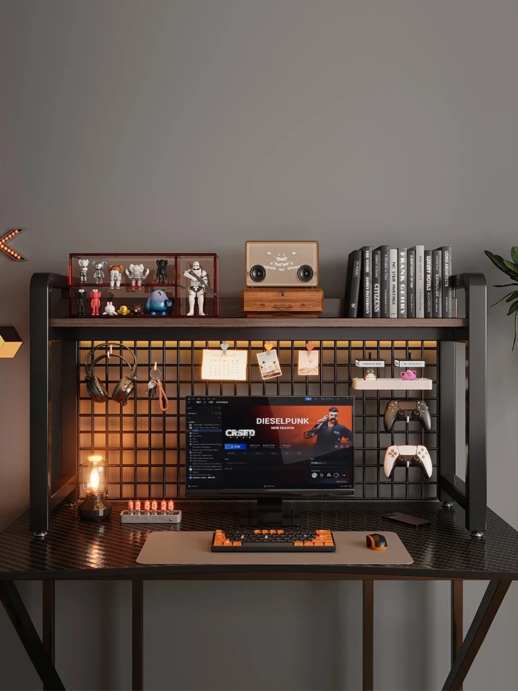 Grid Hole Panel Desktop Storage Rack - Versatile Computer Desk Organizer, Stylish Bookcase for Home & Office, Perfect for Gaming Setup & Space Optimization