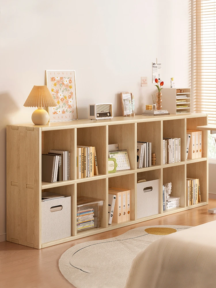 Cream-colored Solid Wood Half-enclosed Nightstand with Grid Storage - Stylish Wall-mounted Bookshelf and Decorative Storage Cabinet for Bedroom Organization
