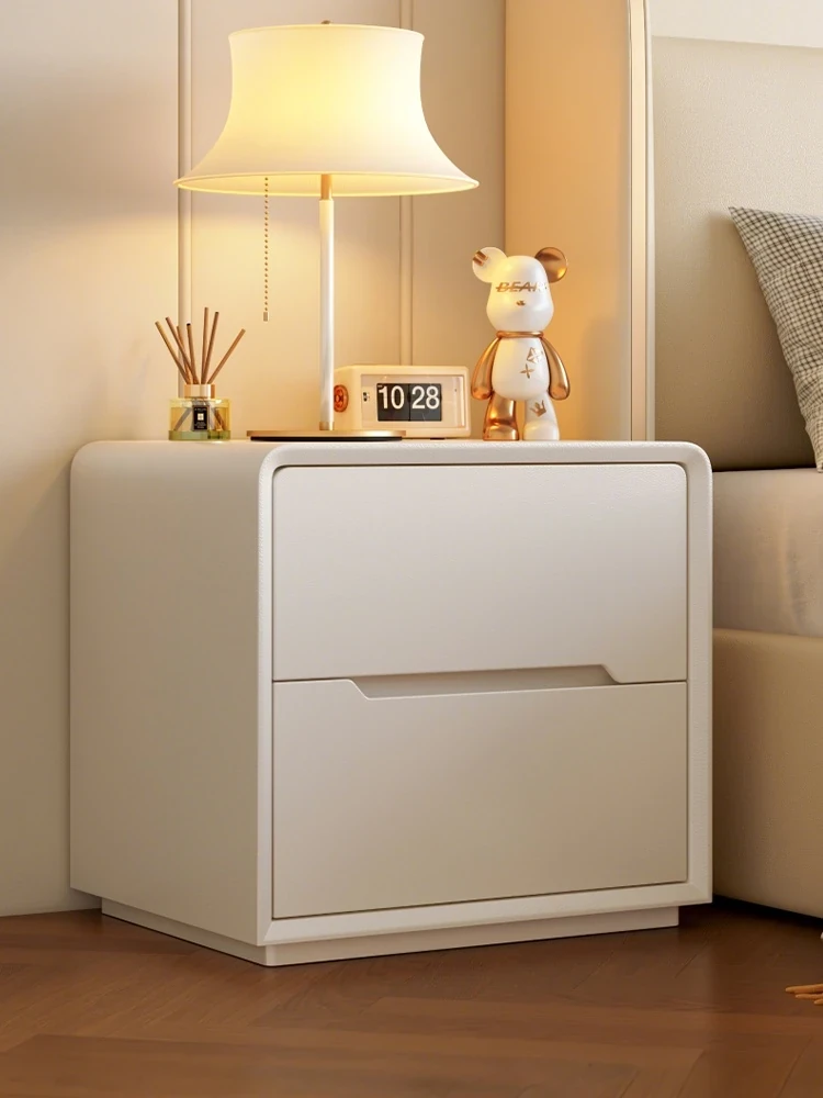 Stylish Small Solid Wood Nightstand for Home Bedroom - 2025 New Cream Aesthetic Luxury Bedside Storage Cabinet