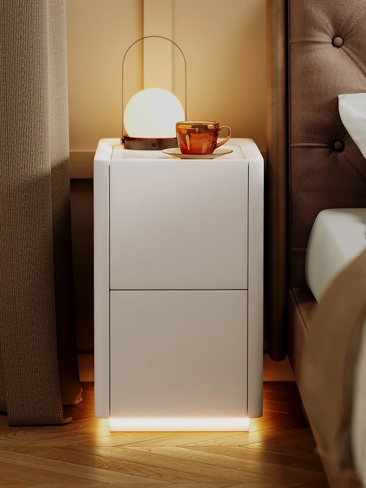 Slim Nightstand with Built-in Light - Modern Minimalist 30cm Narrow Cabinet for Home Bedroom - Solid Wood Bedside Space-Saving Cabinet