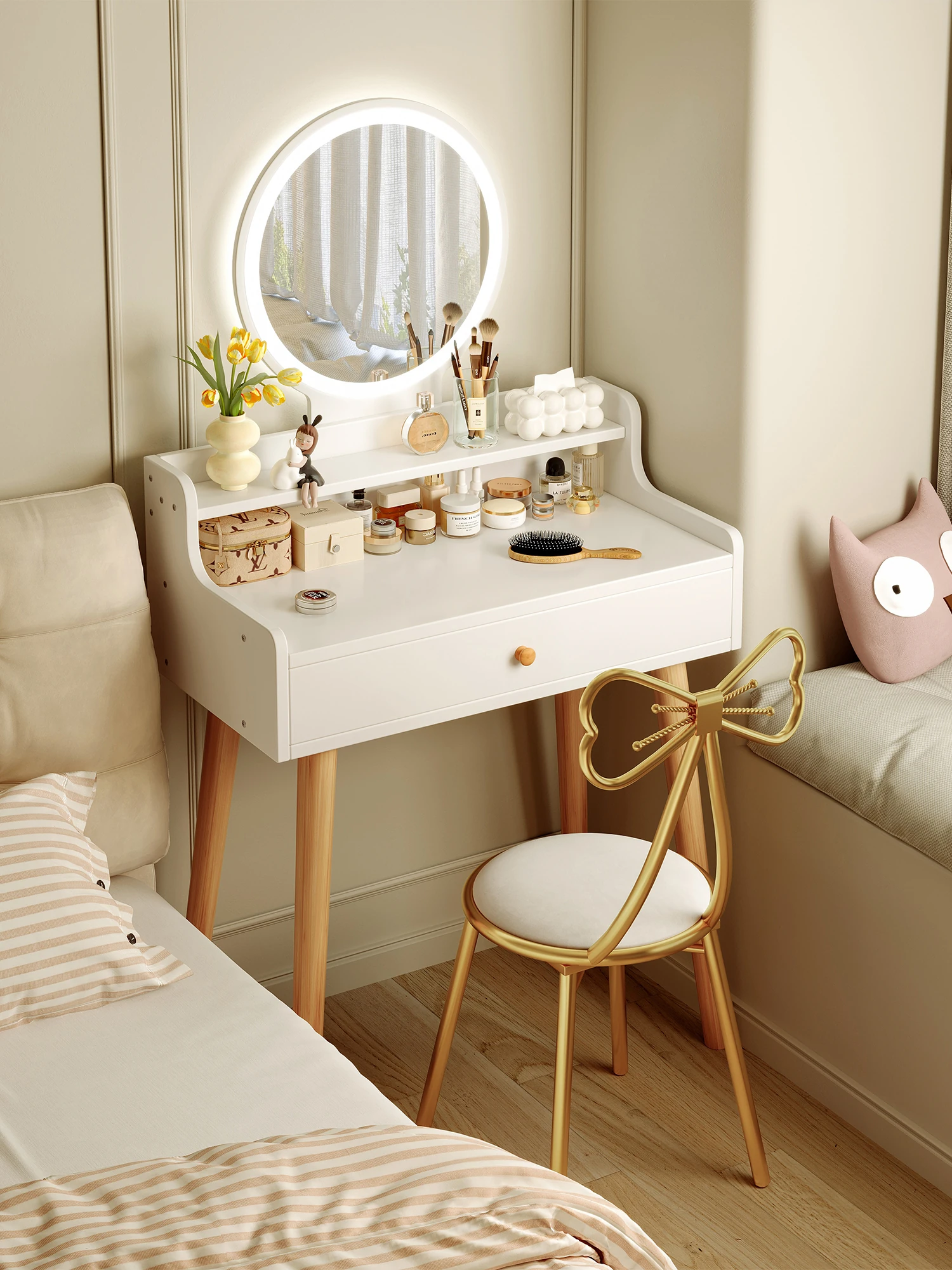 Modern Minimalist 60cm Vanity Table for Small Bedrooms - 2025 New Arrival, Perfect Mini Makeup Desk for Girls in Compact Spaces