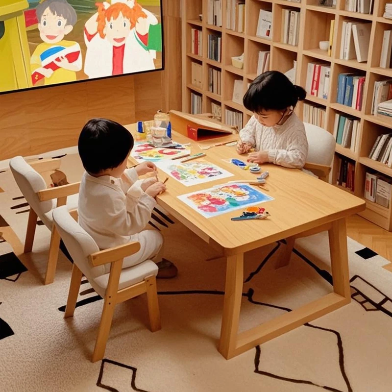 Solid Wood Study Desk for Home - Stylish Long Rectangular Computer Table for Kids and Students, Ideal for Learning and Writing in Living Rooms or Study Areas, Perfect for Two Users.
