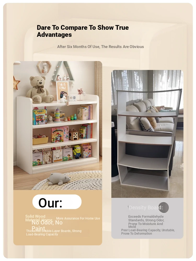 Solid Wood Picture Book Rack for Kids - Stylish Children's Bookshelf for Home Reading Area, Toy Storage, and Baby Bookcase - Simple Low Storage Unit