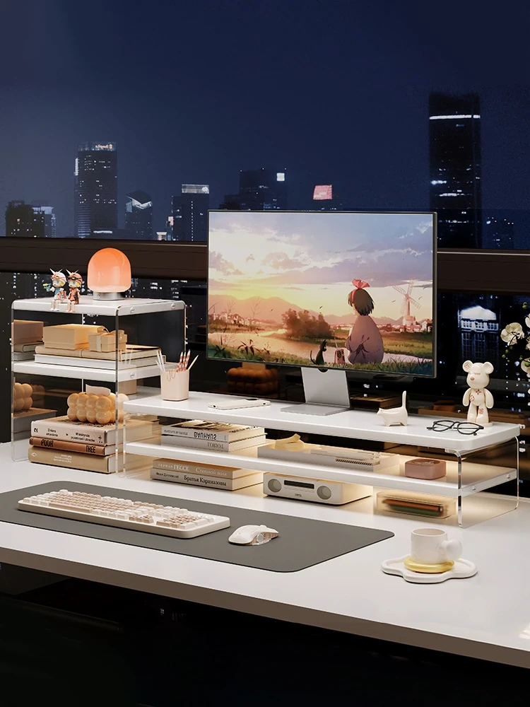 Acrylic Desktop Monitor Stand - Elevate Your PC for Ergonomic Comfort, Perfect Laptop Holder & Office Organizer, Space-Saving Solution for Your Workspace