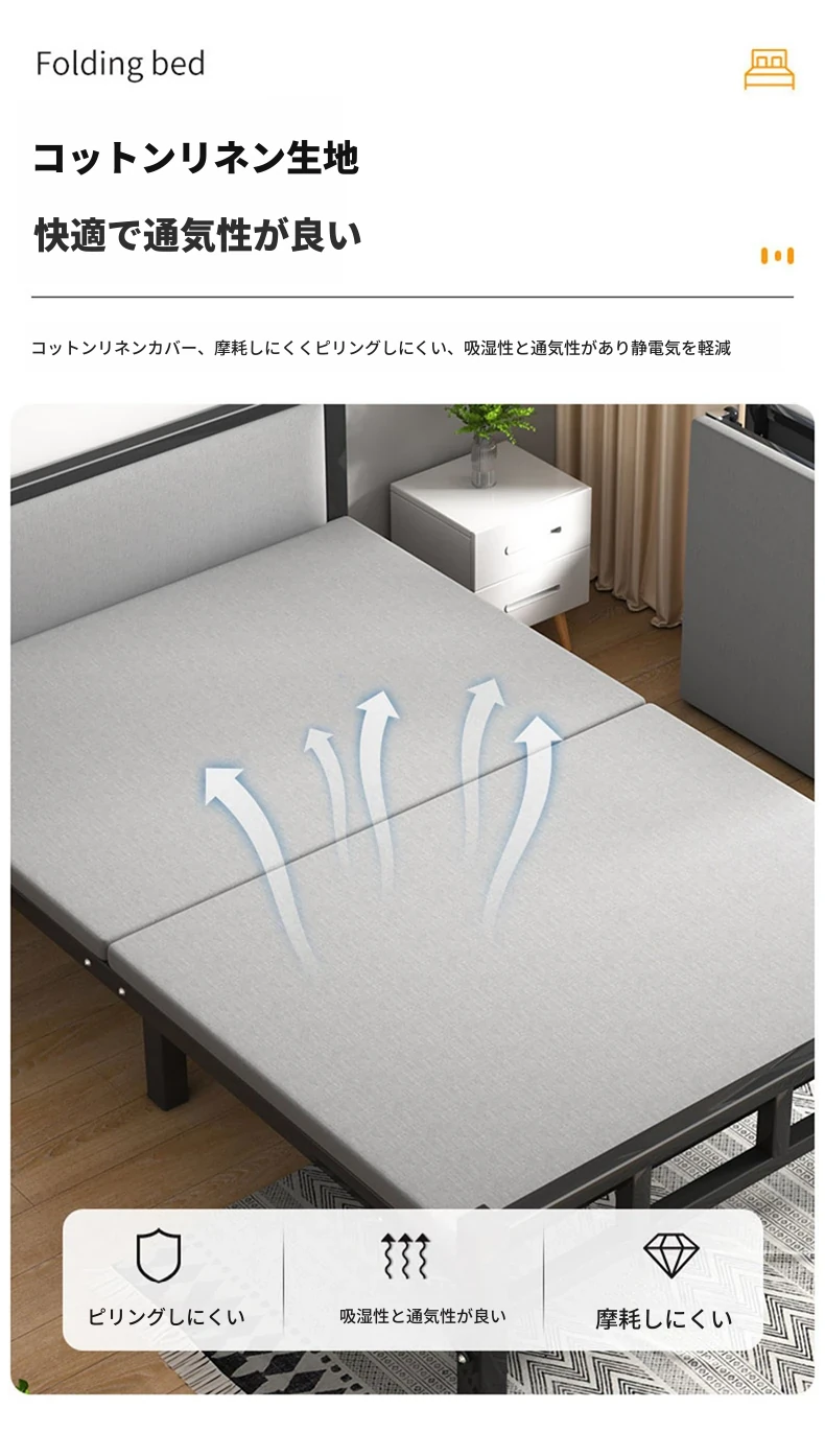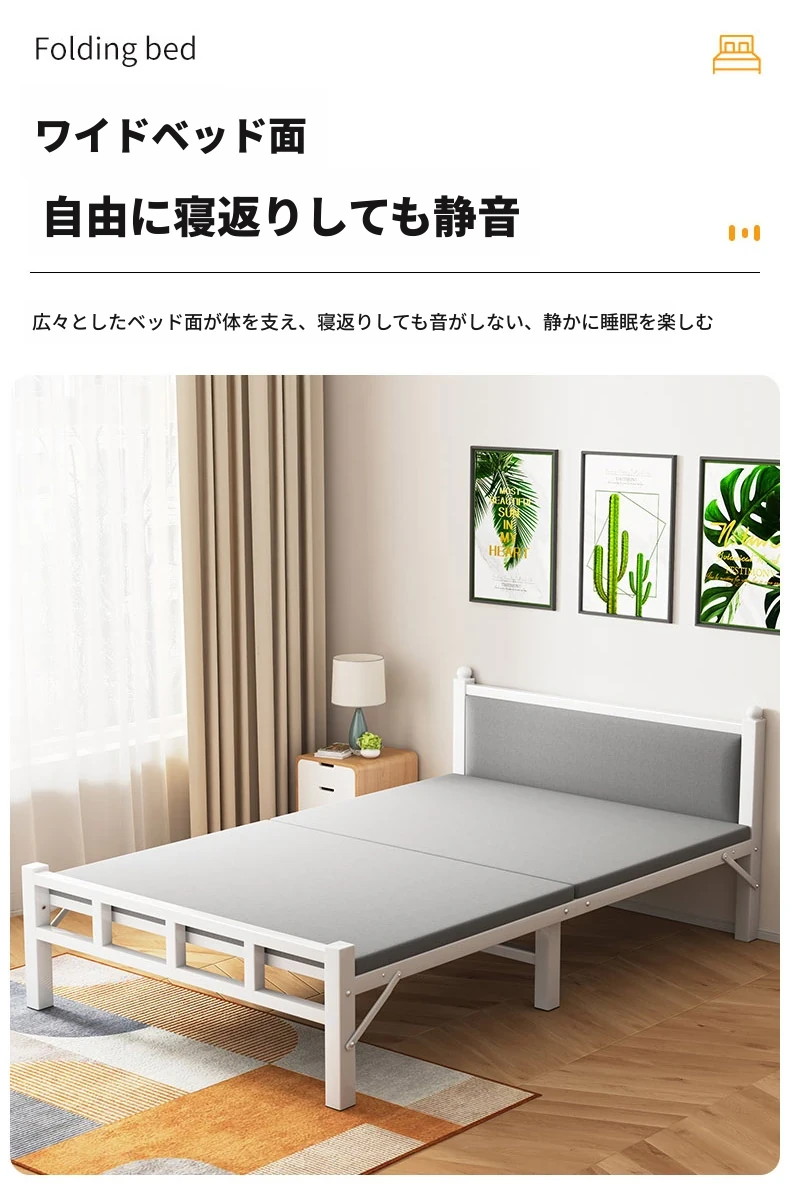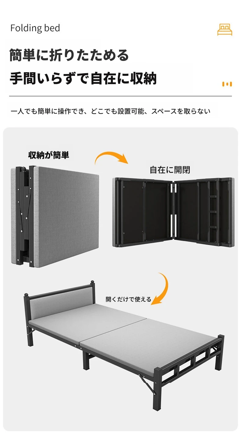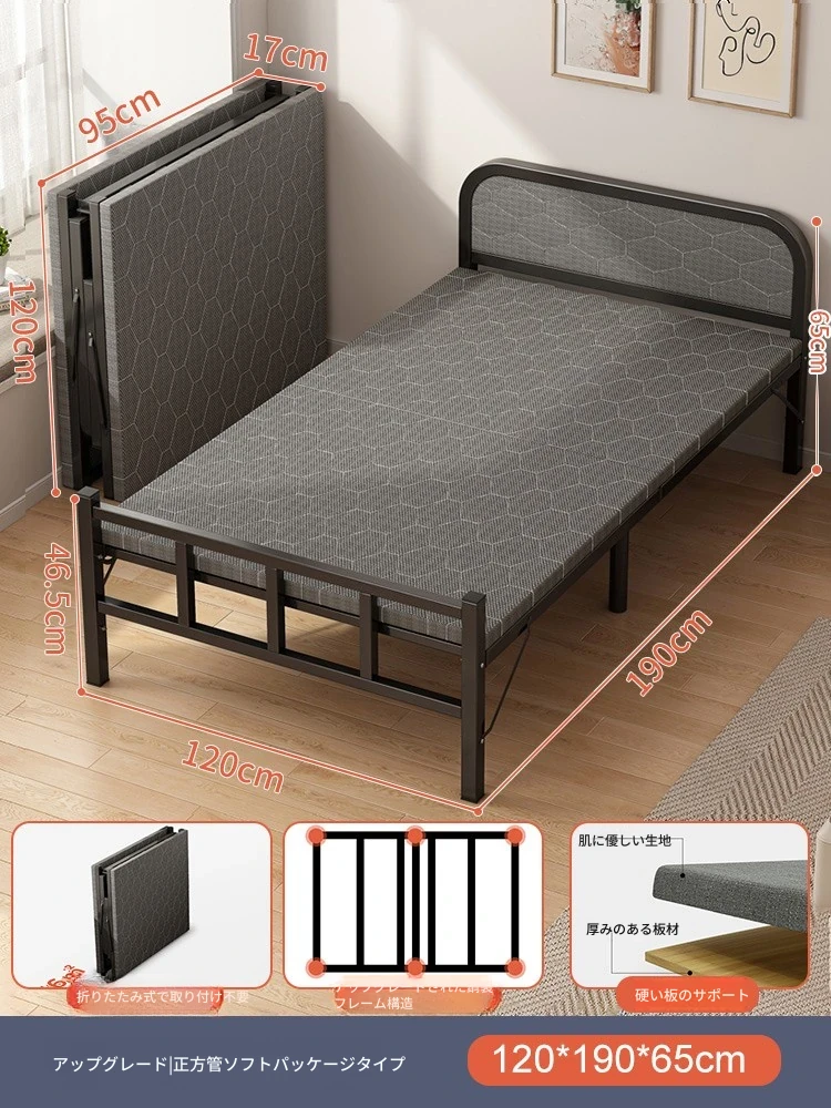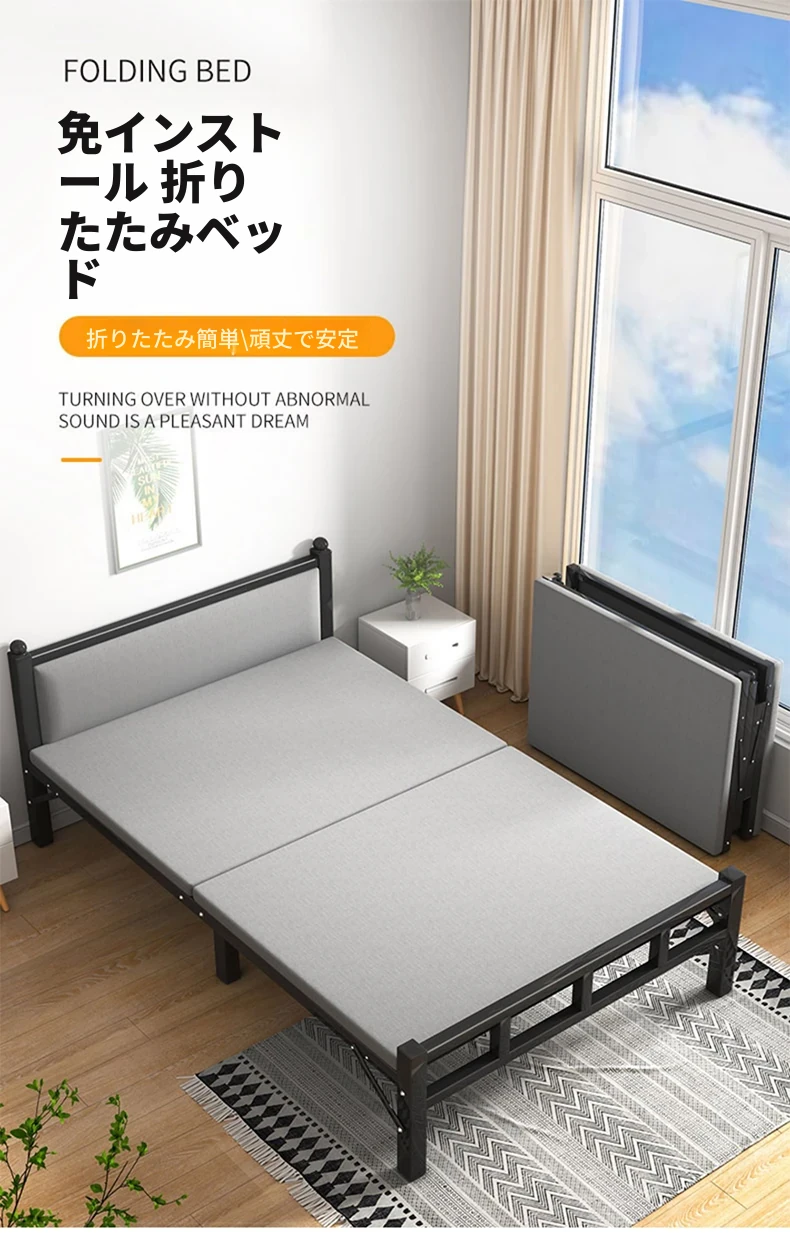 折りたたみシングルベッド|オフィスでの昼寝に最適な簡易大人用1.2mベッド|二つ折りデザインで収納もラクラク!家庭用の頑丈な鉄製ベッドです。快適な休息をサポートします!