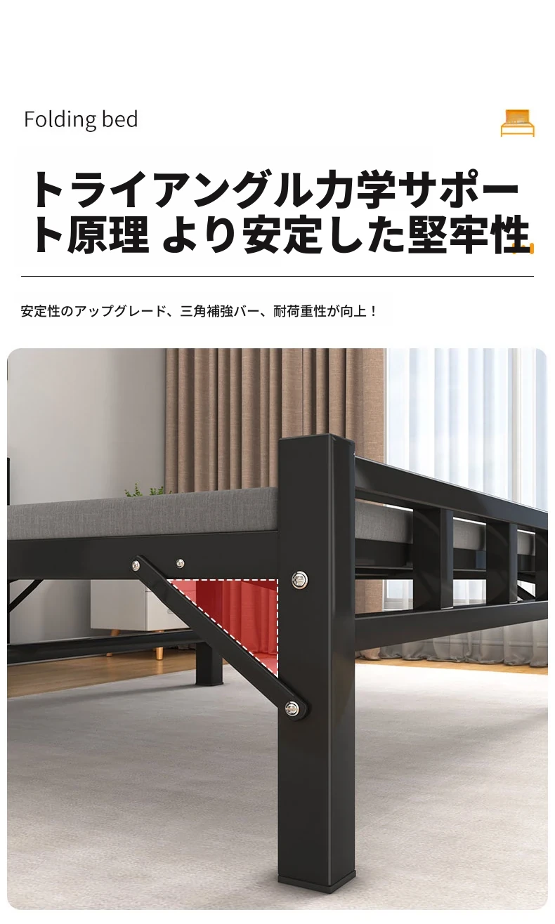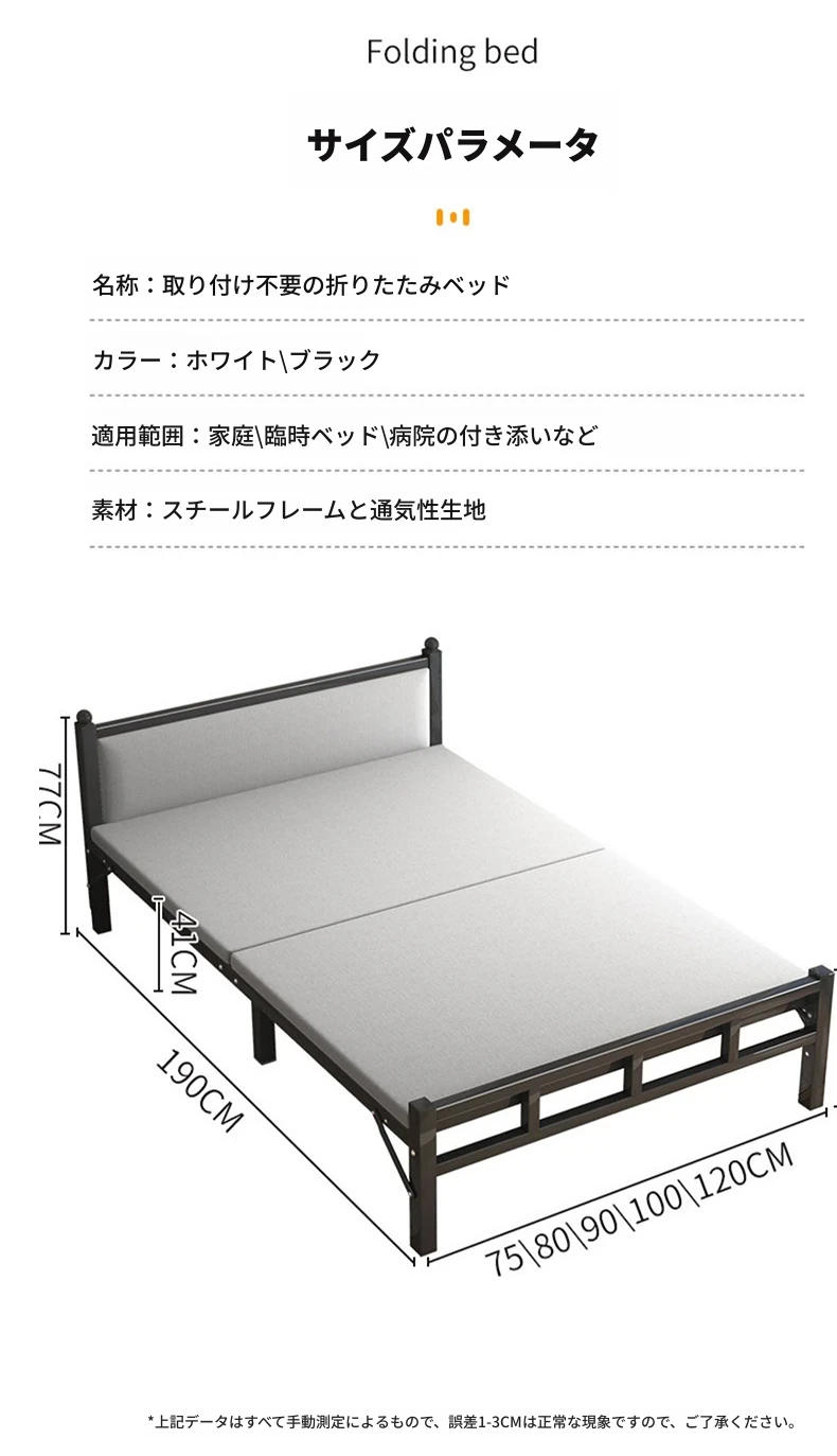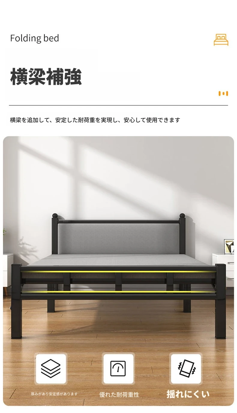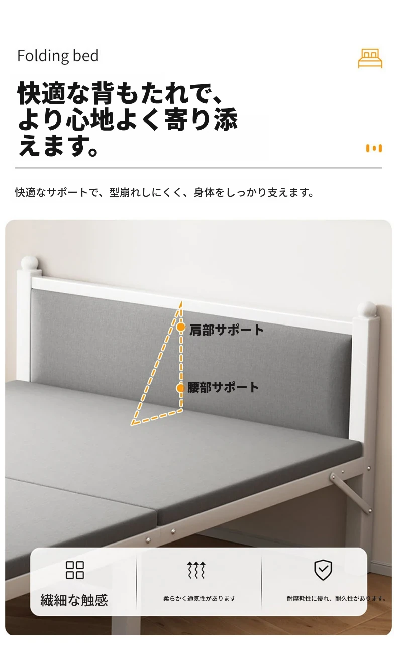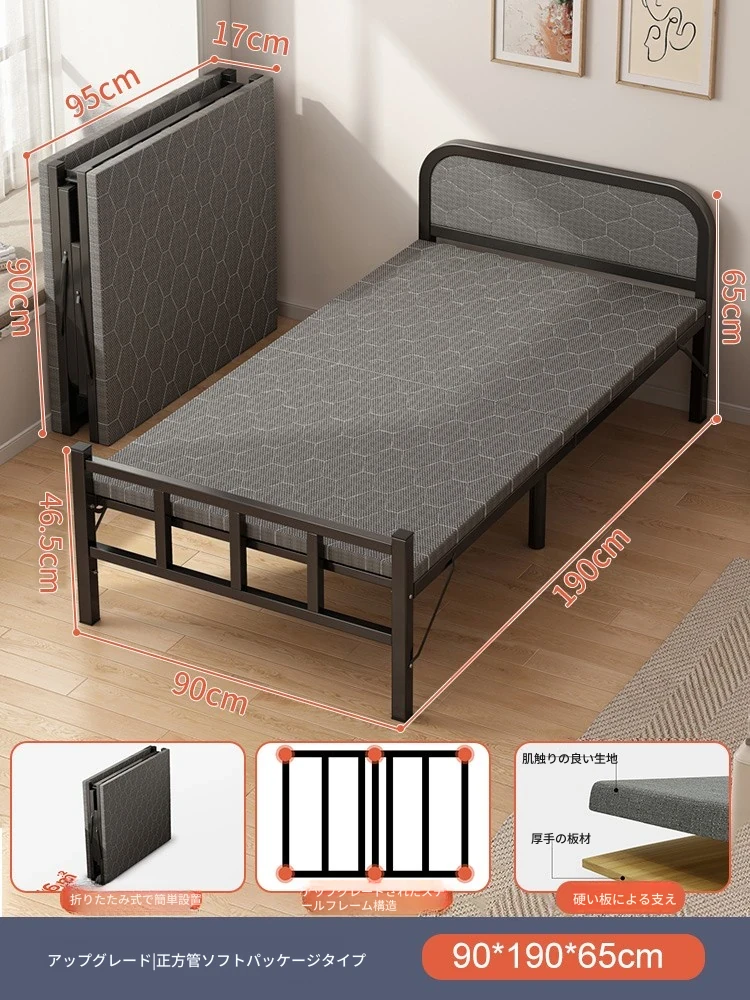 折りたたみシングルベッド|オフィスでの昼寝に最適な簡易大人用1.2mベッド|二つ折りデザインで収納もラクラク!家庭用の頑丈な鉄製ベッドです。快適な休息をサポートします!