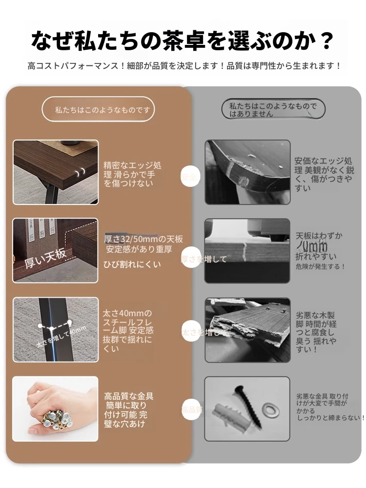 【厚さ32mmの単体テーブル】ヨーロッパのブラックオーク色100*60cm