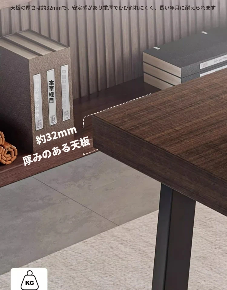 【厚さ32mmの単体テーブル】ヨーロッパのブラックオーク色140*60cm