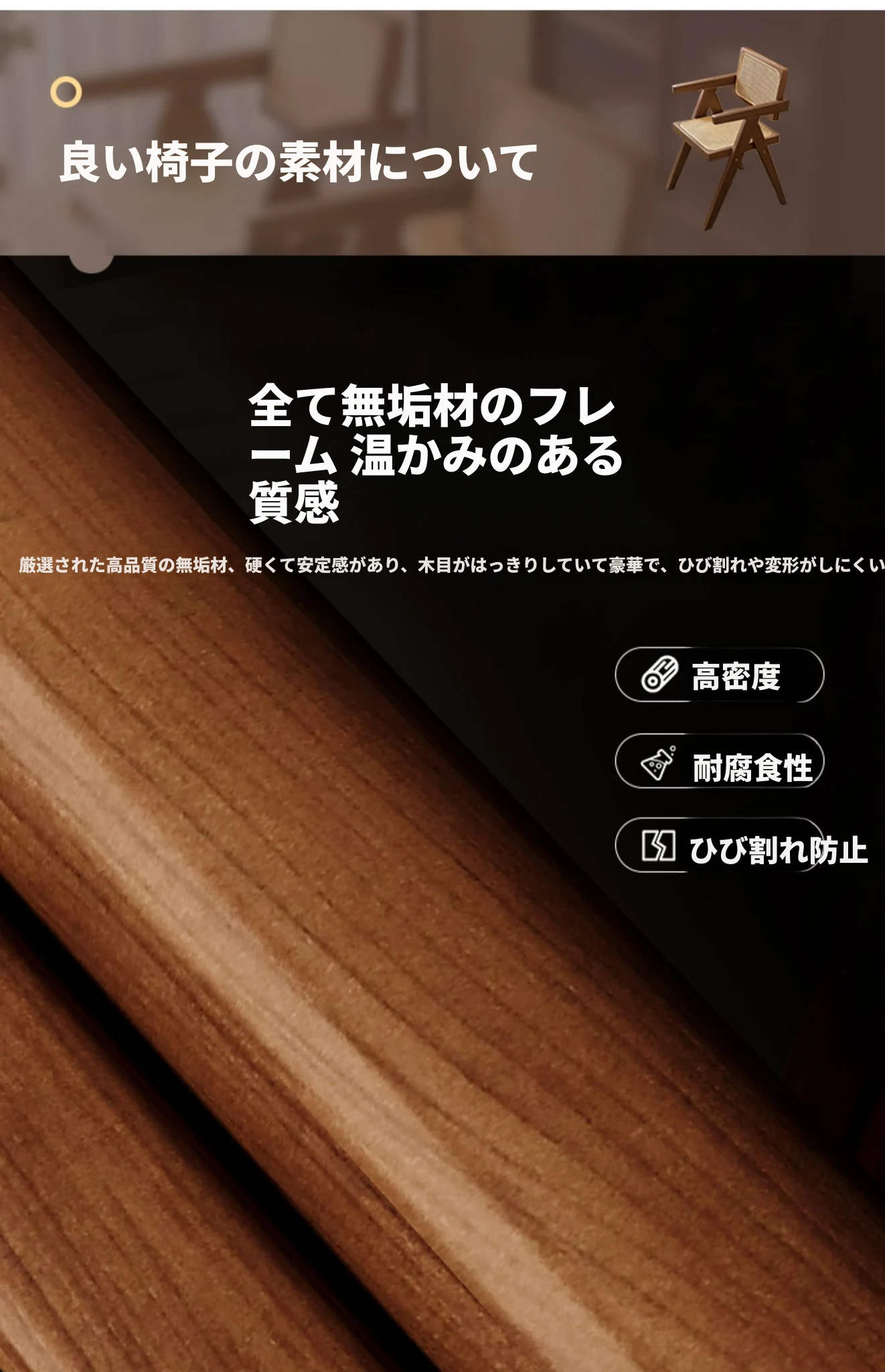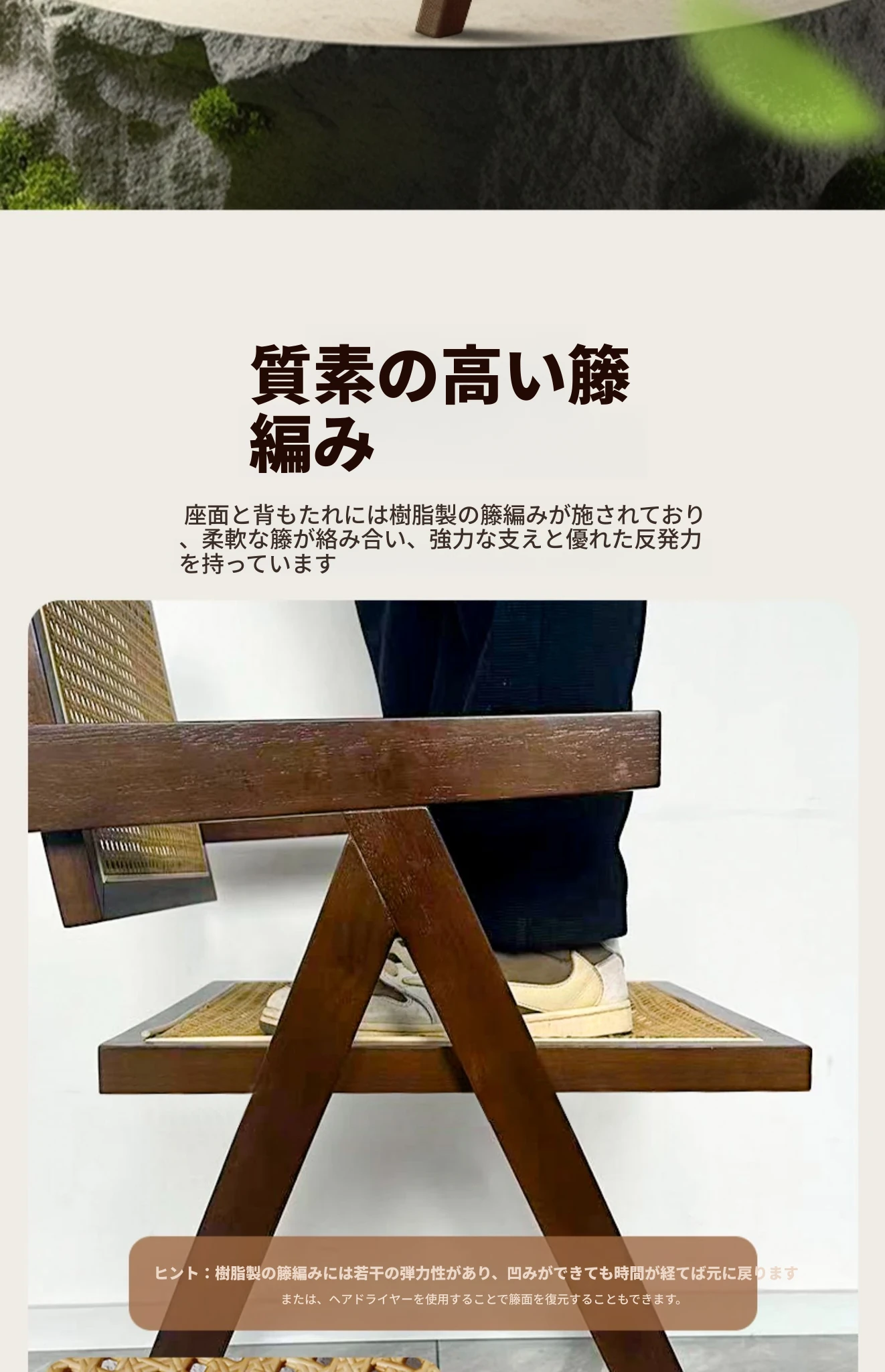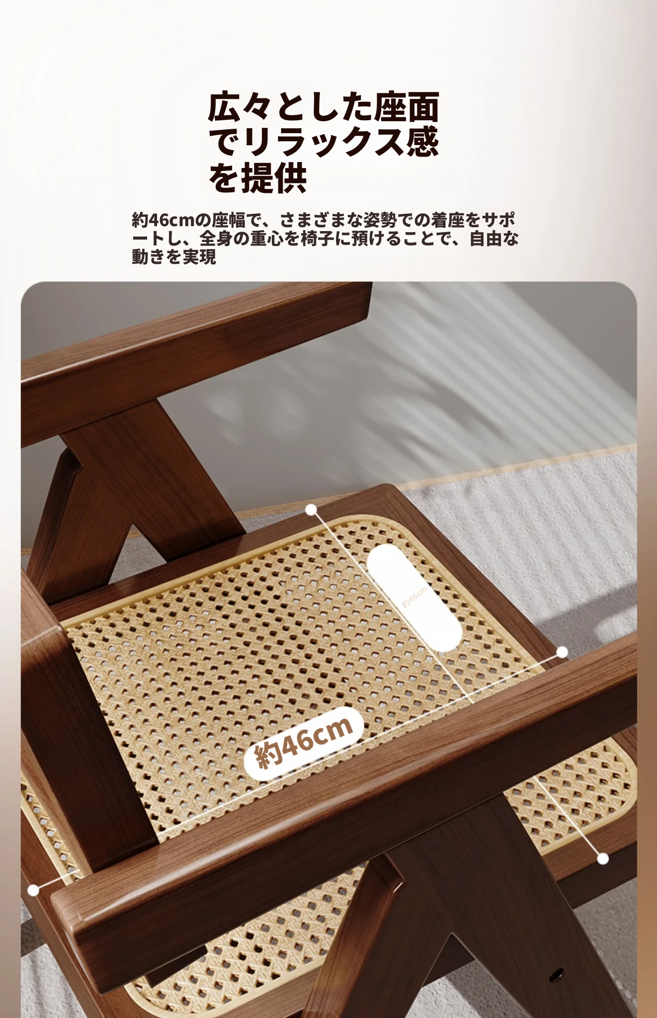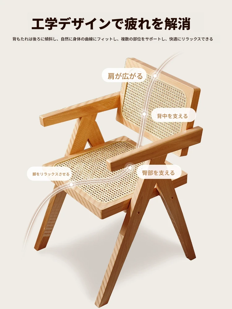 中古の無垢材とラタン編みのダイニングチェア - デザイナー「チャンディーガル」のスタイル!快適な背もたれとアームレスト付きで、家庭用や書斎、リラックス空間に最適です。おしゃれで機能的な一脚をお楽しみください!
