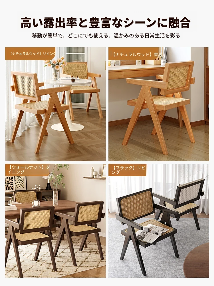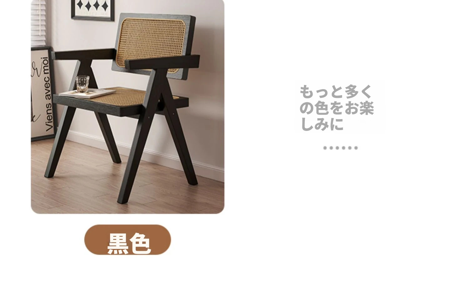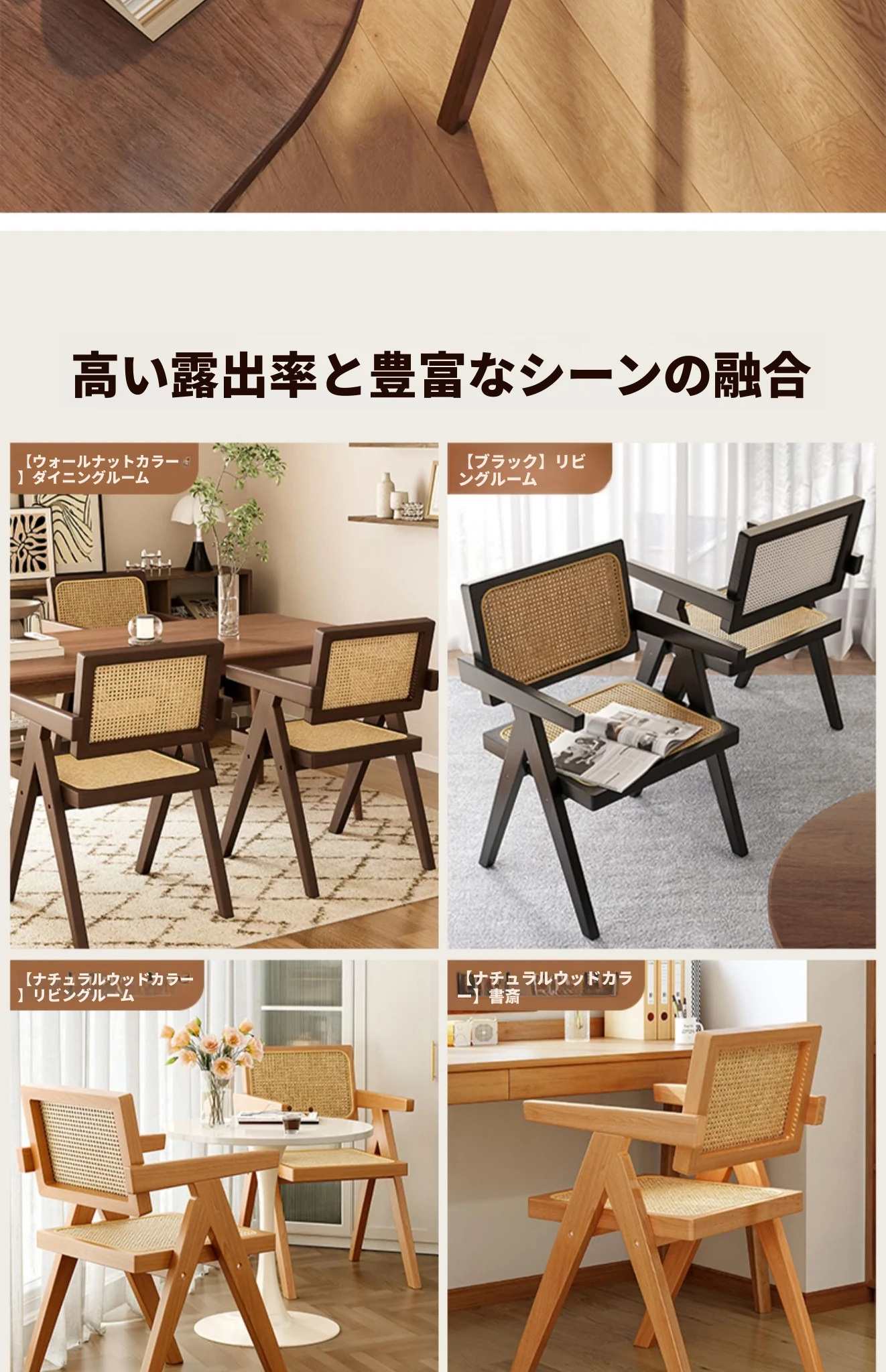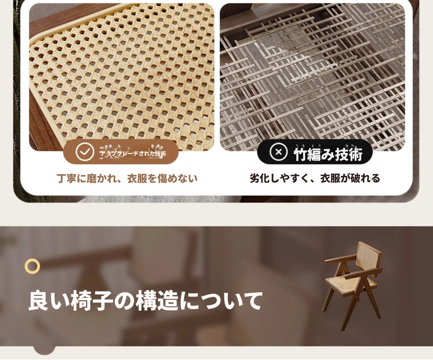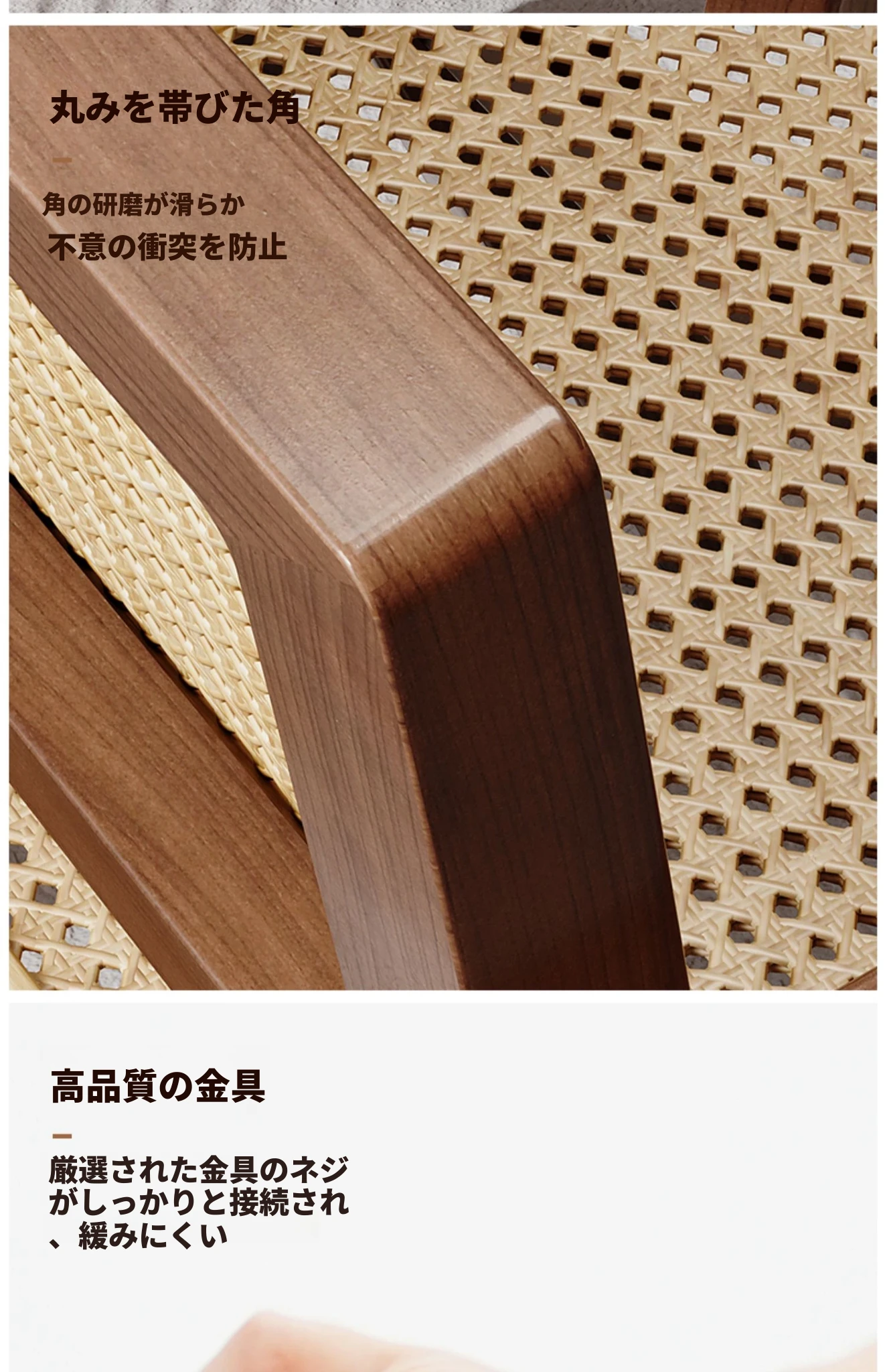 【無垢材とラタン編みの椅子】ライトチェリー色