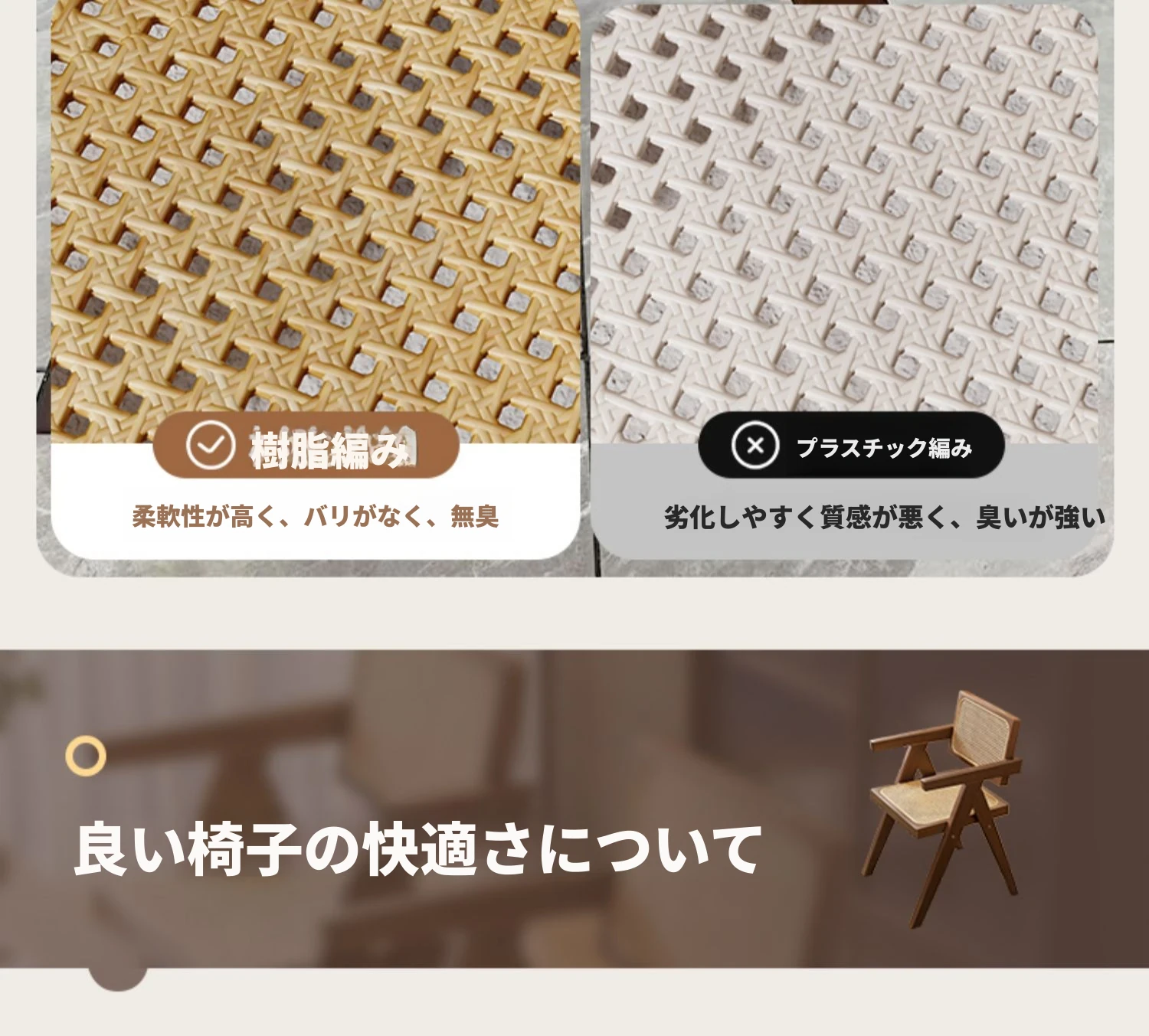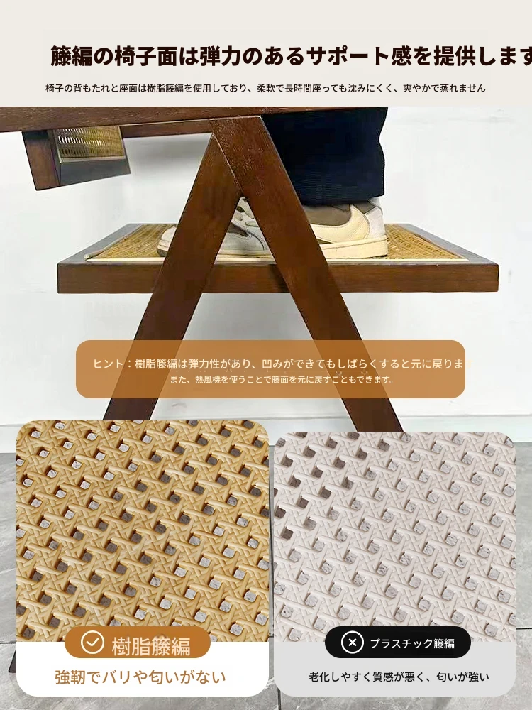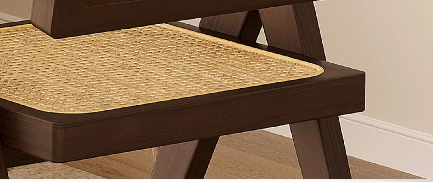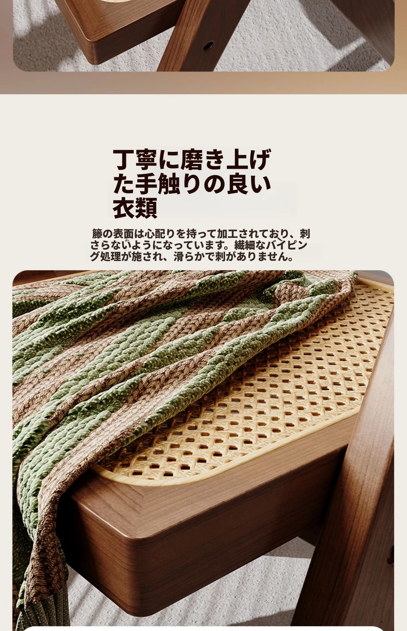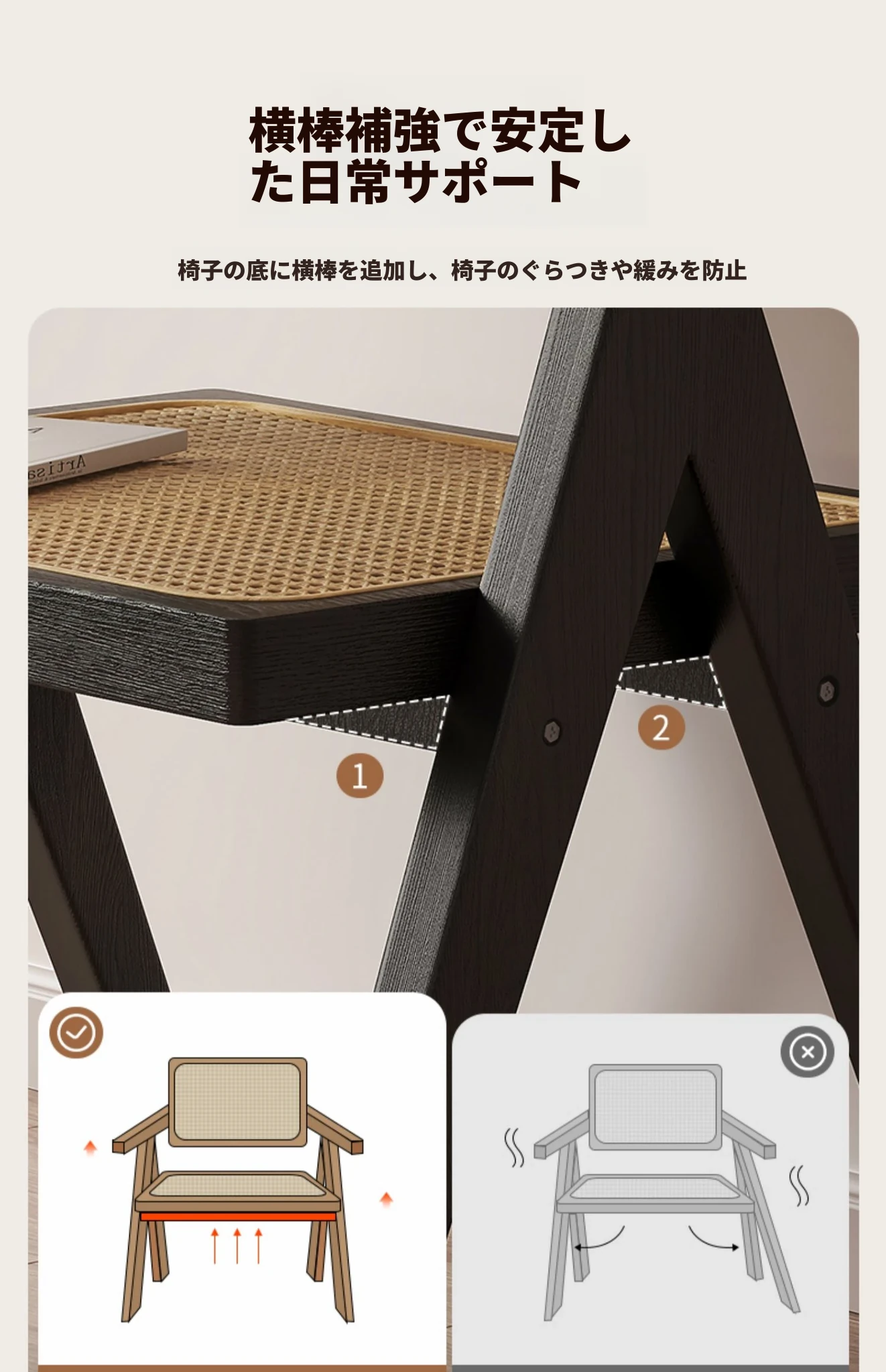 【無垢材とラタン編みの椅子】ライトチェリー色