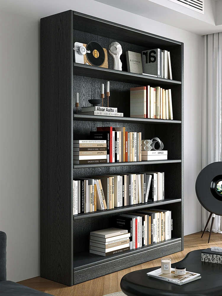 アメリカンスタイルの無垢材製本棚!壁にぴったりフィットし、自由に組み合わせ可能なフロアスタンド式の本棚。モダンな黒色イタリアンデザインで、家のインテリアをスタイリッシュに演出します!