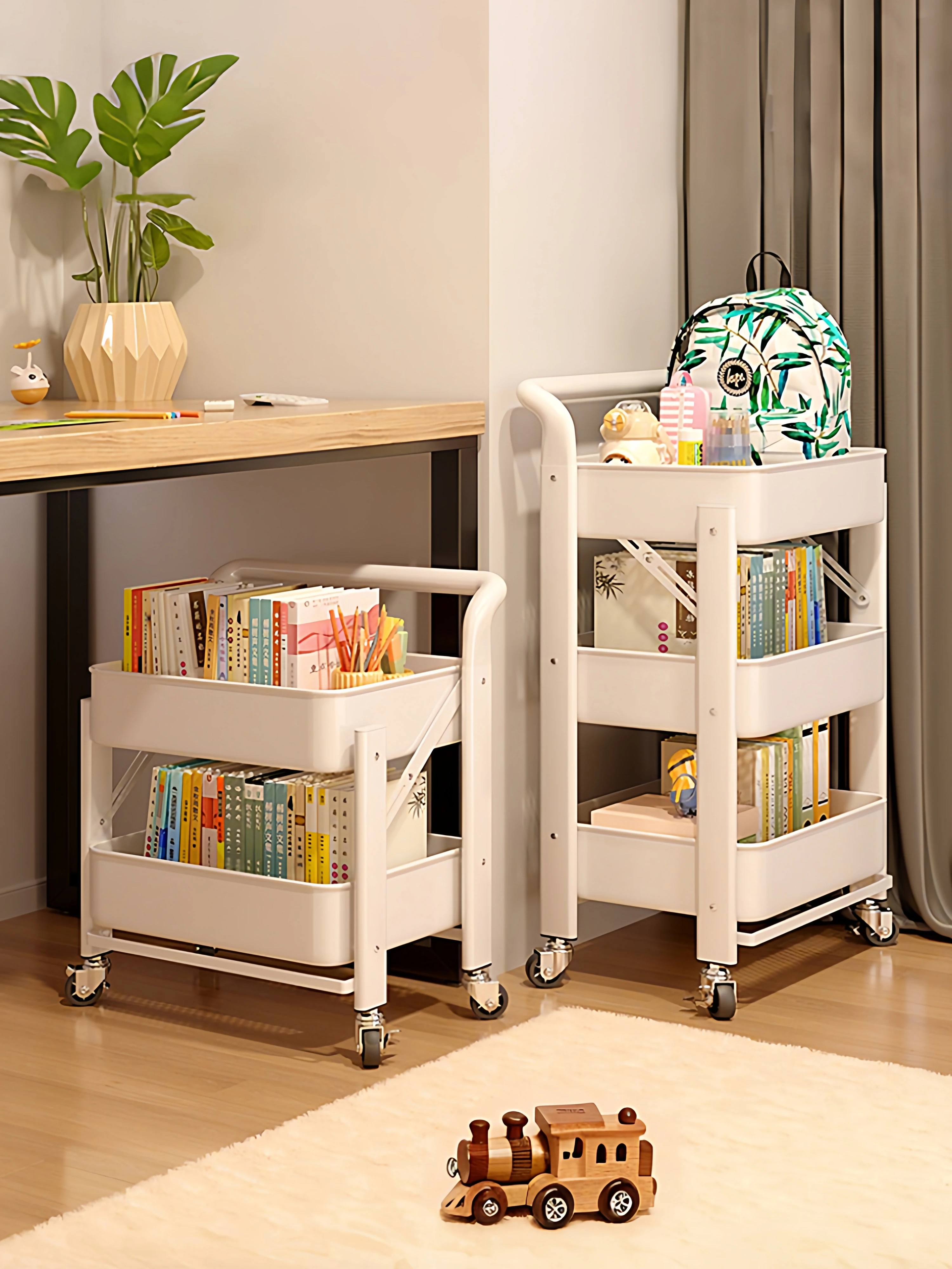 移動式ブックシェルフ - デスク下にぴったり!キャスター付きで便利な収納ラック、教科書や書類をスッキリ整理。デスクサイドに置ける使えるアイテム!あなたの学習環境をもっと快適に!