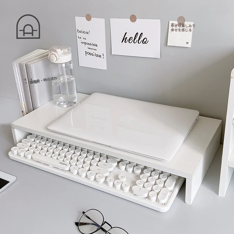 デスク上の必需品!ノートパソコン・デスクトップ用昇降スタンド - 宿舎やオフィスに最適な収納力抜群のディスプレイラックで、作業スペースをスッキリ整理!